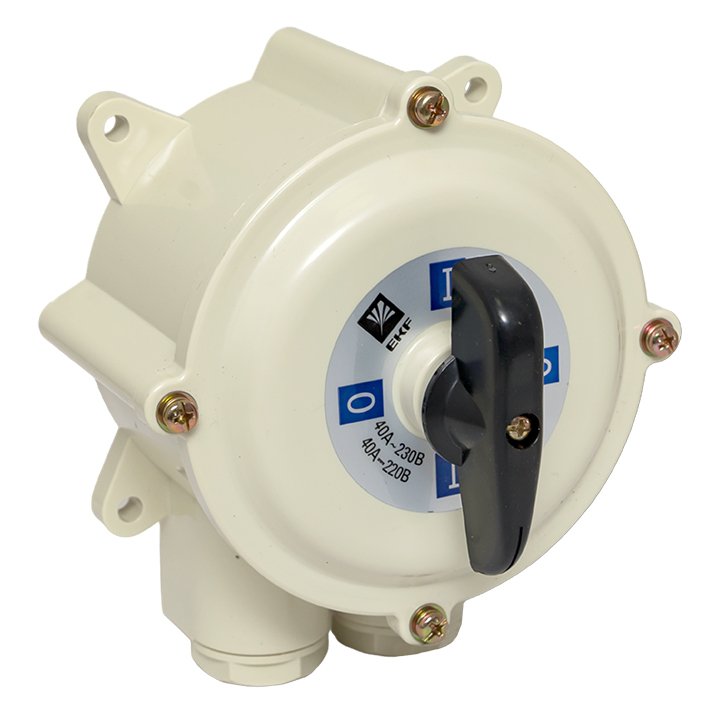 Пакетный выключатель. Пакетный выключатель 3-х полюсный "O-I", 3 цепи на замыкание, U-раб. 230 В, I-коммут. 40 А, корпус из ударопрочного негорючего пластика, IP57, габ.размеры ВхШхГ 165х140х130 мм