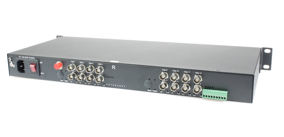 Удлинитель HDCVI, HDTVI, AHD, CVBS, RS485. Оптический приемник 16 каналов видео HDCVI/HDTVI/AHD/CVBS и 1 двунаправленный канал управления (RS485/полудуплекс) по одномодовому оптоволокну до 20км; Максимальное разрешение 5Мп; Рабочие длины волн CWDM: 1310нм/1550нм/1490нм/1570нм; Вх. - FC. Вых. - BNCx16/Клемм.колодка(RS485); AC220В/20 Вт ; 484x44x220мм.; -15°…+60°C.; Возможен монтаж в стойку 19’’, 1U