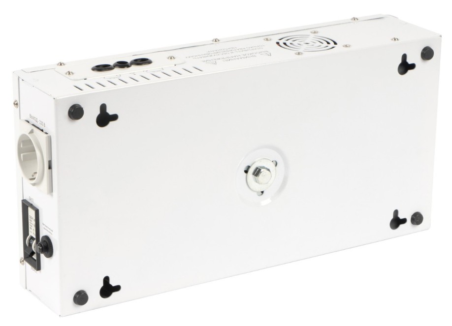 Стабилизатор напряжения. Стабилизатор напряжения; U-вх.100...260 В, U-вых.202...237 В, Р-нагр.3000 ВА; форма выходного напряжения - чистая синусоида; защита от перегрева, встроенный вентилятор, защитное отключение при аварийно низком/высоком напряжении с автоматическим восстановлением; цифровой дисплей; IP20, t-раб.-10...+40°C, габ.размеры 452х247х103 мм, вес 11.3 кг