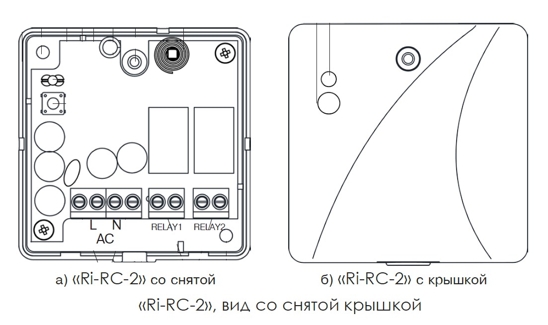 Реле управления. Реле управления двухканальное для работы в составе системы RiDom; f-раб. 868,7…869,2 МГц, Р-изл. ≤25 мВт; U-пит. 85…265 В 50/60 Гц; имеет два независимых выхода типа "сухой контакт", I-коммут.макс. 16 А (при резистивной нагрузке, cos φ=1) и 5 А (при реактивной нагрузке, cos φ≠1); УХЛ4, IP20, t-раб. -30…+55°C, габ.размеры 65х65х28 мм.
