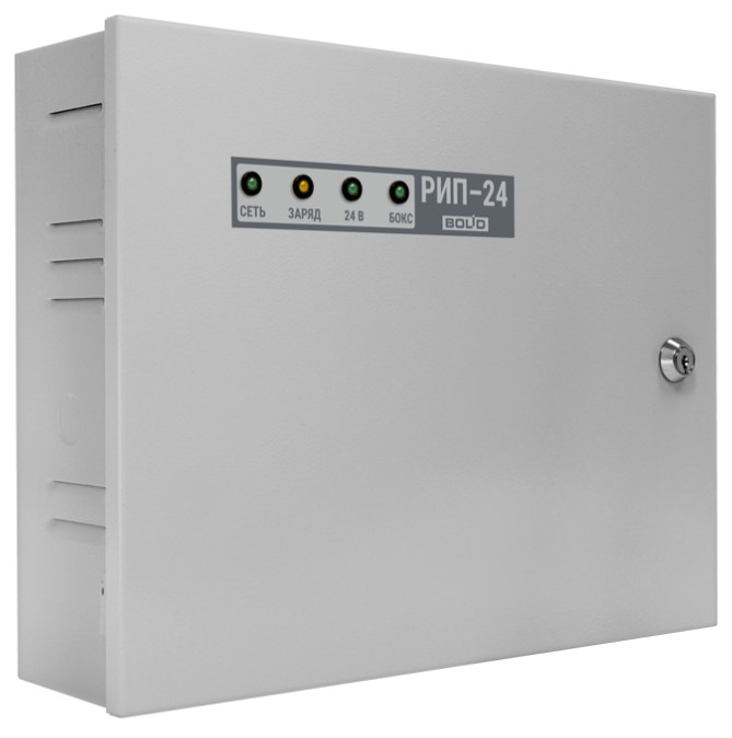 Источник питания резервированный. Резервированный источник питания; U-вх.187…242 В, U-вых.26.6…27.8 В, I-ном.3 А, I-max.4 А (до 10 минут), под два АКБ 12 В 7 А·ч; световая и звуковая индикация режимов работы, три оптоэлектронных диагностических выхода, защита от короткого замыкания, защита аккумулятора от глубокого разряда; IP20, t-раб.-10…+40°C, 340х270х100 мм. Возможность подключения бокса на два аккумулятора 12 В 17 А·ч (Бокс-24 исп.01)