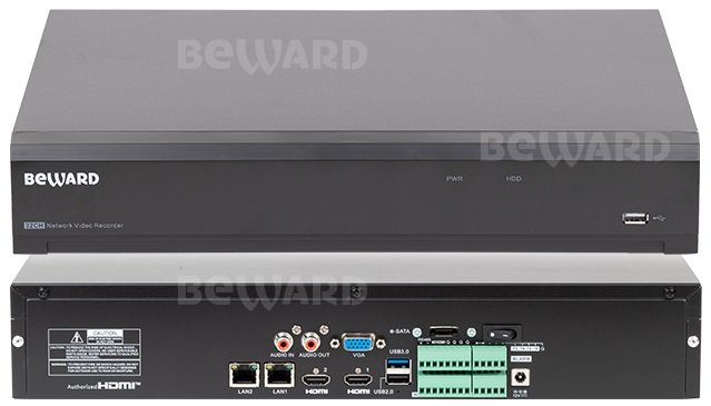 Видеорегистратор IP 32-канальный. Видеорегистратор IP 32-ти канальный; 1xVGA (1920х1080), 2xHDMI (3840х2160); входящий поток 320 Мб/с; исходящий поток 320 Мб/с; разрешение записи до 12 Мп 25 к/с; H.265/H.264; 4 SATA + 1 eSATA для HDD до 22Тб; тревожные вход/выход- 16/1, аудиовход/выход -1/1; ONVIF, RTSP; 2xRJ-45 10/100/1000 Мбит/с; 3xUSB, RS-485; АС 220 В; 12Вт (без HDD); -10°C...+50°C; 378х66х326 мм.