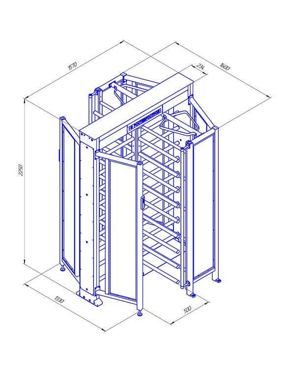 Турникет полноростовый. Полноростовой роторный 4-х лопастной турникет «Ростов-Дон ПР1С/4М2» с ограждением из стекла. Пропускная способность в режиме однократного прохода 30 чел./мин. Ширина прохода 500 мм. 12±2 B DC; 44,5 Вт; +1°C...+50°C; УХЛ 4.2; 1570х1600х2250 мм; 280 кг.