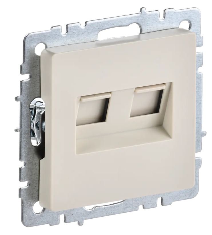 Розетка. Розетка двойная RJ11+RJ45 серии BRITE, кат.5E, IP20, цвет бежевый