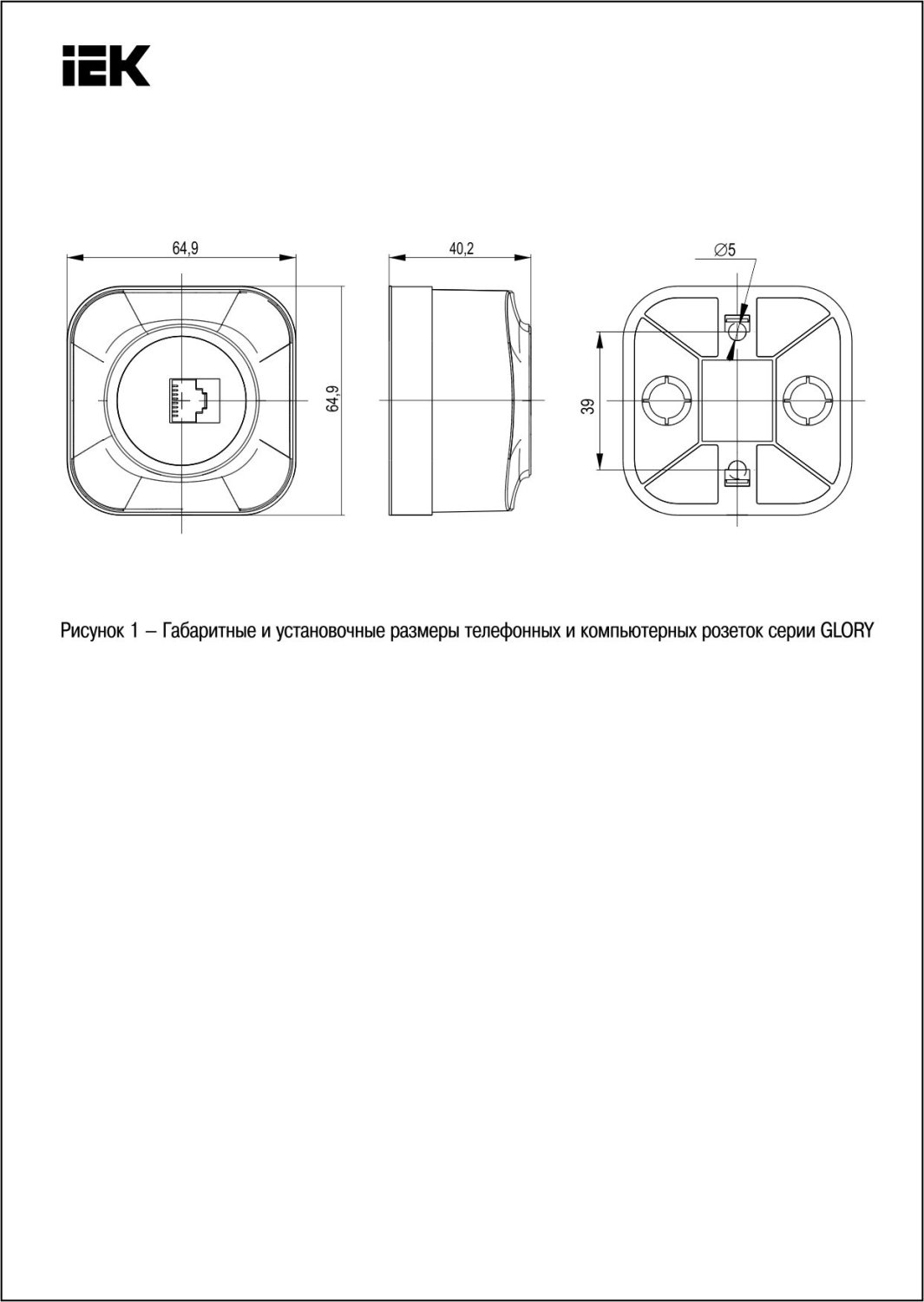 Розетка компьютерная. Розетка для открытой установки компьютерная RJ45; серия GLORY; cat 5e; 64.9х64.9х40.2 мм. Цвет белый