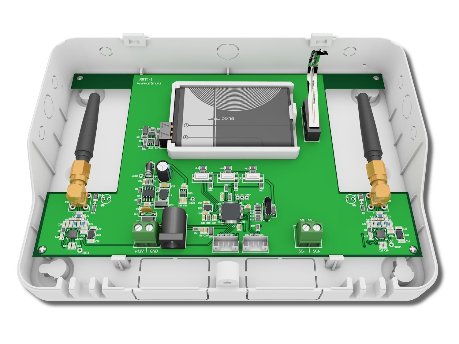 Ретранслятор радиоканальный. Ретранслятор для работы с радиоканальными извещателями компании Ритм, f-раб.433,075...434,775 МГц, 7 каналов, разъем антенны SMA, дальность связи до 800 м, 1 ШС, MicroUSB, U-пит.12 В, I-потр.260 мА, резервный источник питания АКБ BL-5C, t-раб.-30...+50°С, 170х120х40 мм