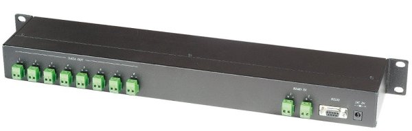 Разветвитель RS232, RS485. Последовательный распределитель данных 1 вход RS485/RS232 под клеммы , 8 выходов RS485 под клеммы; Дальность передачи до 1200 м. по витой паре; DC12В /350мА (БП в комплекте); -40°...+55°C; 483x44x100мм; Возможность каскадного подключения к RS008, RS016; корпус 19", 1U