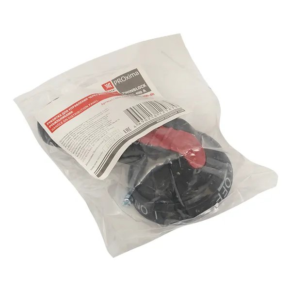 Рукоятка для управления через дверь рубильниками TwinBlock EKF. Рубильники серии TwinBlock предназначены для пропускания номинальных токов, включения и отключения электрических цепей номинальным напряжением до 690 В переменного тока частотой 50 и 60 Гц в устройствах распределения электрической энергии. Для моделей без рукоятки предусмотрены два типа рукояток: выносная рукоятка для управления через дверь и рукоятка управления для прямой установки на рубильник.