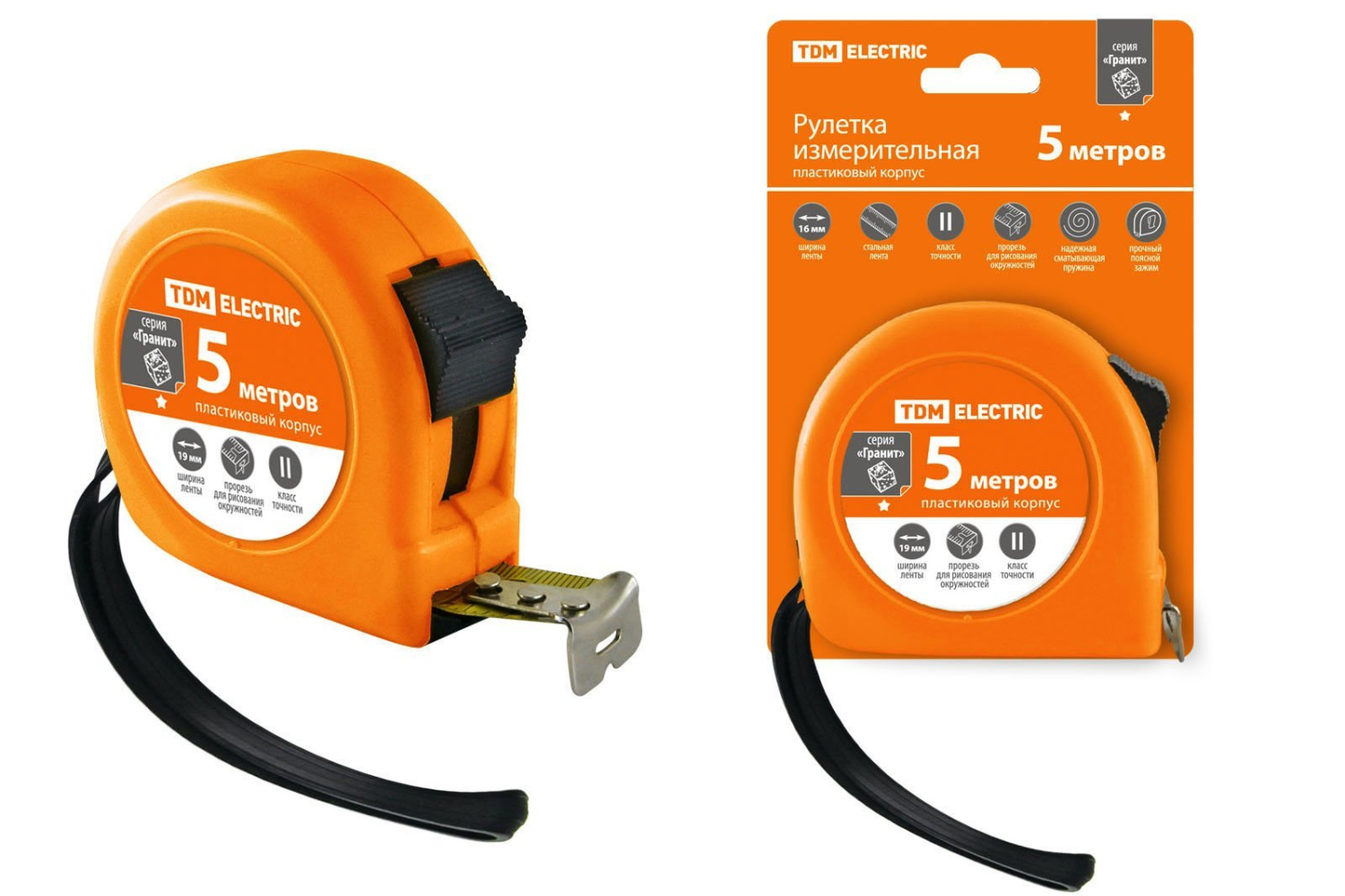 Рулетка 5м, стальная лента, ширина 19мм, пластиковый корпус "Гранит" TDM (SQ1018-0102)