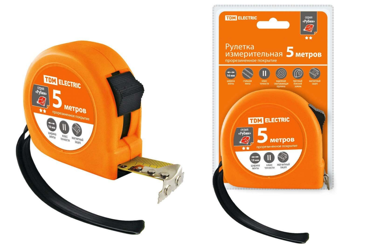 Рулетка 5м, стальная лента, ширина 19мм, прорезиненное покрытие, магнит "Рубин" TDM (SQ1018-0106)