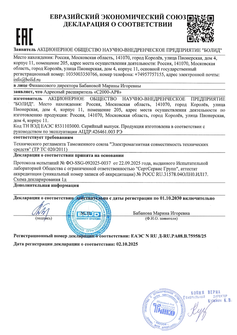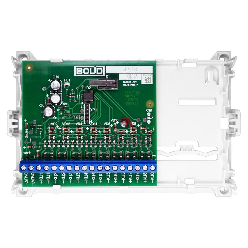 Расширитель адресный. Адресный расширитель для работы с С2000-КДЛ (С2000-КДЛ-2И), восемь шлейфов для подключения извещателей с нормально-замкнутыми и нормально-разомкнутыми контактами, тампер, индикация состояния расширителя, IP30, t-раб.-30…+50°С, 156x107x39 мм