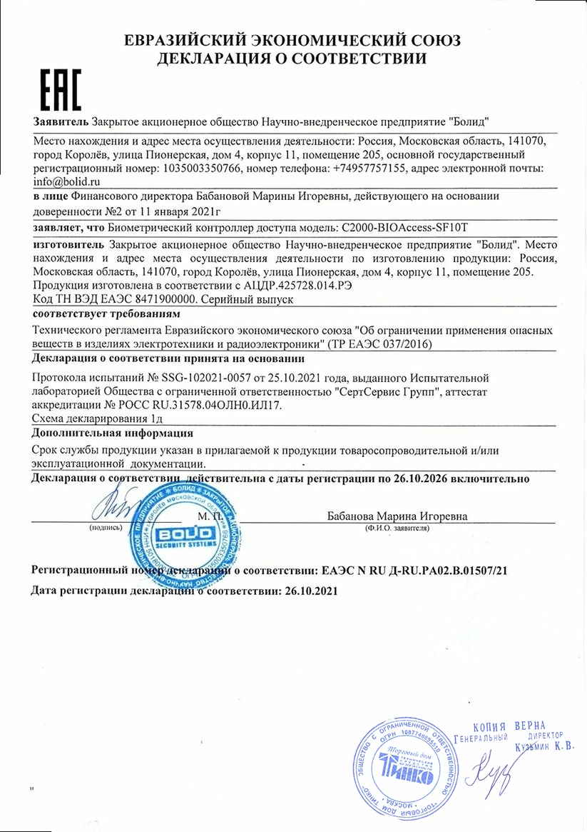 С2000-BIOAccess-SF10T