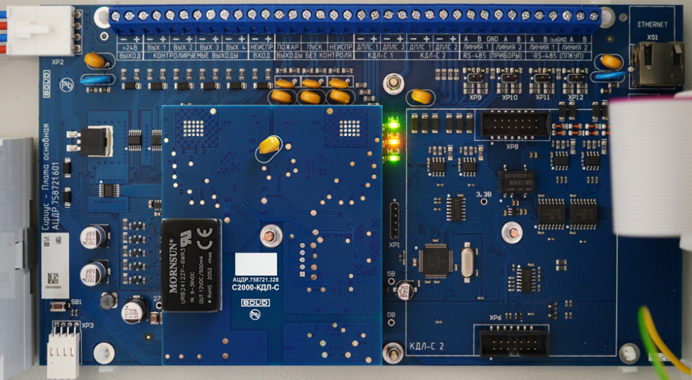 Блок расширения. Контроллер двухпроводной линии связи для работы в приборе "Сириус"; до 127 адресных устройств; I-потр.180 мА (max) при питании от "Сириус"; t-раб.-30...+50°С, 80×93×23 мм