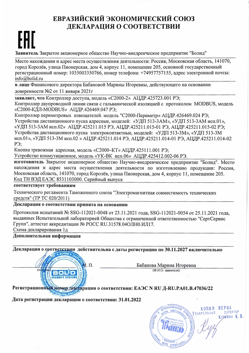 Электропитание и информационный обмен кнопки осуществляется по двухпроводной линии связи контроллера «С2000-КДЛ». Поддерживает протокол двухпроводной линии связи ДПЛС_v2.xx и позволяет получать значение напряжения ДПЛС в месте своего подключения.