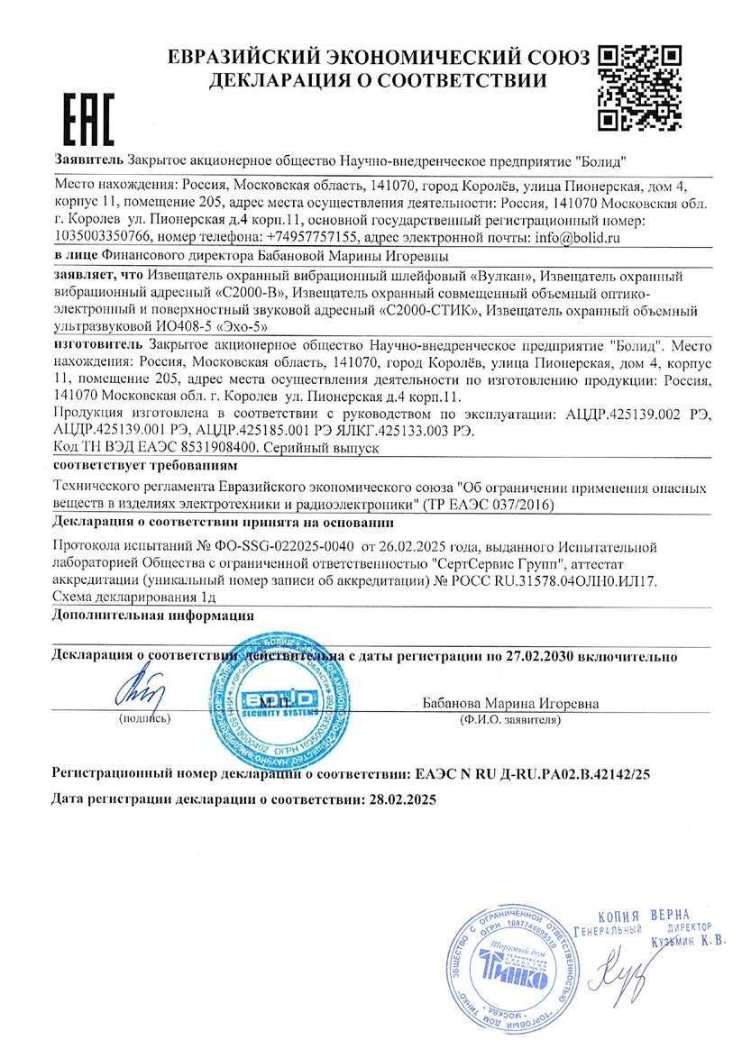 Предназначены для обнаружения попытки преднамеренного разрушения (взлома):- бетонных стен и перекрытий толщиной не менее 0,12 м- кирпичных стен толщиной не менее 0,15 м- деревянных конструкций толщиной материала от 20 до 40 мм- конструкций из фанеры толщиной не менее 4 мм- конструкций из древесностружечных плит толщиной не менее 15 мм- металлических сейфов, шкафов, дверей и банкоматовИзвещение о тревоге выдается по двухпроводной линии связи на контроллер «С2000-КДЛ» интегрированной системы охраны «Орион».Площадь охраняемой поверхности:- для сплошной бетонной, железобетонной, кирпичной конструкции - до 30м²- деревянной конструкции - до 12 м²- для металлического шкафа, двери, верхнего кабинета банкомата - до 6 м²- для сейфов, нижнего кабинета банкомата- до 3 м²