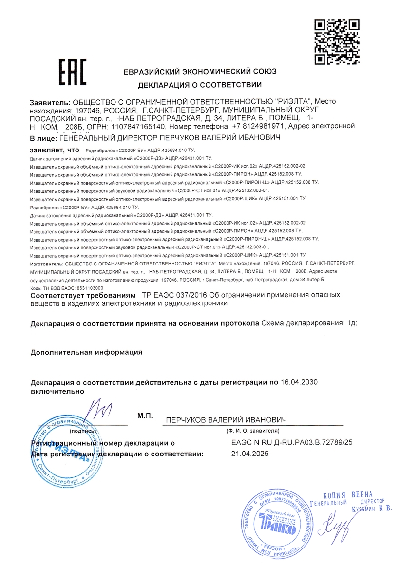Радиобрелок «С2000Р-БУ» предназначен для передачи управляющих команд на приёмно-контрольный прибор системы пожарной и охранной сигнализации. Брелок предназначен для работы с радиоканальными охранно-пожарными блоками серии «Сигнал-GSM-Р».Основные функции управляющих команд брелока: взятие объекта на охрану, снятие объекта с охраны, запрос состояния объекта, отправка сигнала Тихой тревоги.В брелоке осуществляется контроль состояния источника питания.