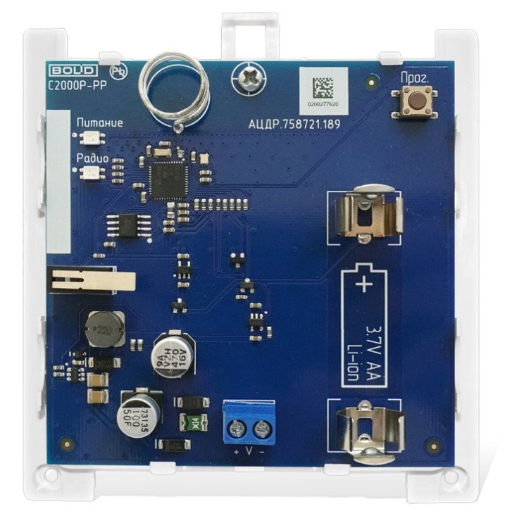 Ретранслятор радиоканальный. Ретранслятор радиоканальный для работы с С2000Р-АРР125, поддерживает подключение до 64 радиоканальных устройств, 8 уровней ретрансляции, f-раб. 868 МГц, U-пит. 9,5...24 В, резервное питание - АКБ тип 14500 3.7 В (в комплекте); IP20, t-раб. без АКБ -30…+50°C, t-раб. с АКБ 0…+45°C, габ.размеры 107х102х39 мм
