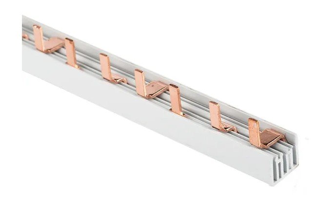 Шины соединительные представляют собой пластины, выполненные из меди (шины на 100 А – из луженой меди), закрепленные в корпусе из диэлектрического материала, не поддерживающего горение, и выпускаются стандартной длиной 1 метр. Шины соединительные делятся на два типа - FORK («вилка») и PIN («гребенка») на номинальные токи 63 и 100 А. Могут быть выполнены в одно- двух- трех- и четырехполюсном исполнений.