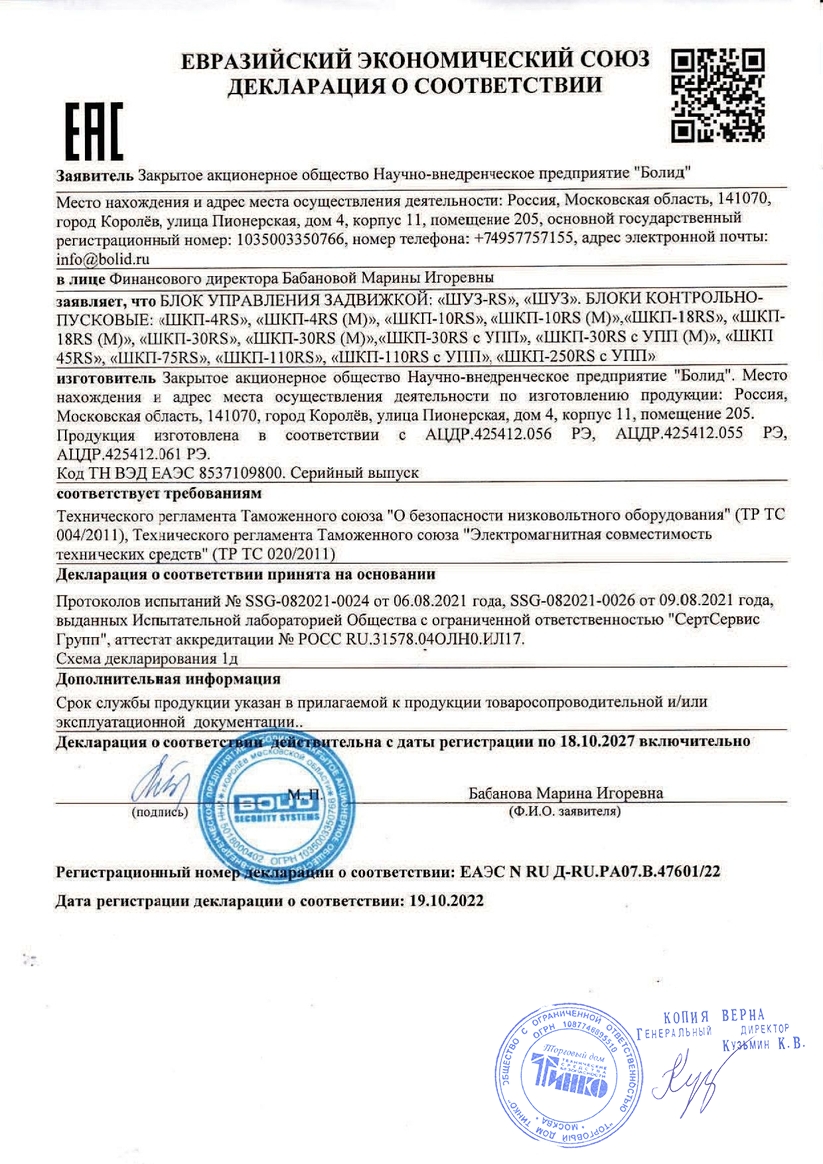 Блок контрольно-пусковой ШКП-RS предназначен для управления исполнительными устройствами в системах АУПТ: управления исполнительными устройствами (световыми и звуковыми пожарными оповещателями и т.д.) и средствами пожарной автоматики в системах оповещения, формирования сигнала управления инженерным, технологическим оборудованием и иными устройствами, участвующими в обеспечении пожарной безопасности, контроля 7 входов технологической сигнализации.