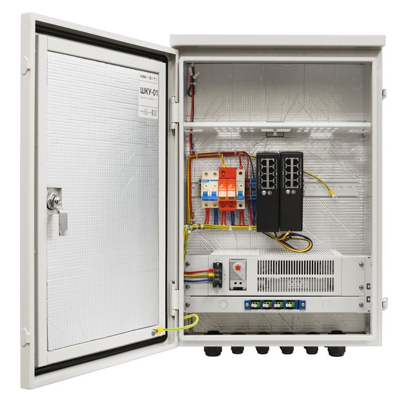 Шкаф предназначен для установки телекоммуникационного и прочего электротехнического оборудования с целью защиты установленного внутрьоборудования от воздействия окружающей среды и несанкционированного доступа.Шкаф оснащён системой поддержания микроклимата с помощью встроенных элементов: обогревателя, вентилятора и термостата с возможностью установки температуры включения обогрева. Так же, состав шкафа, входит дополнительный вентилятор малой мощности, уставленный в верхней части корпуса, для улучшения рециркуляции воздуха и снижения риска возникновения конденсата. Вентилятор подключен через отдельный автоматический выключатель.