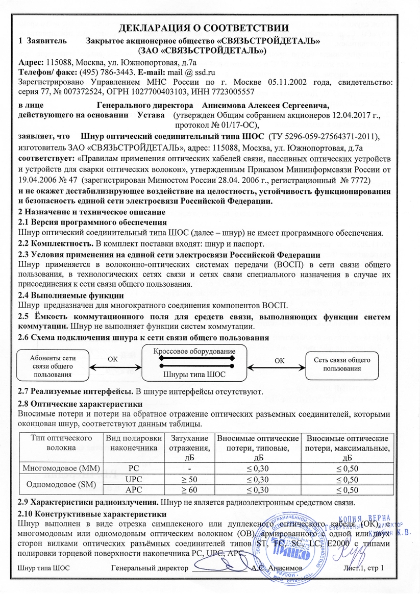 ШОС-SM/0.9мм-LC/UPC-p/t -1.0м (130202-05631)