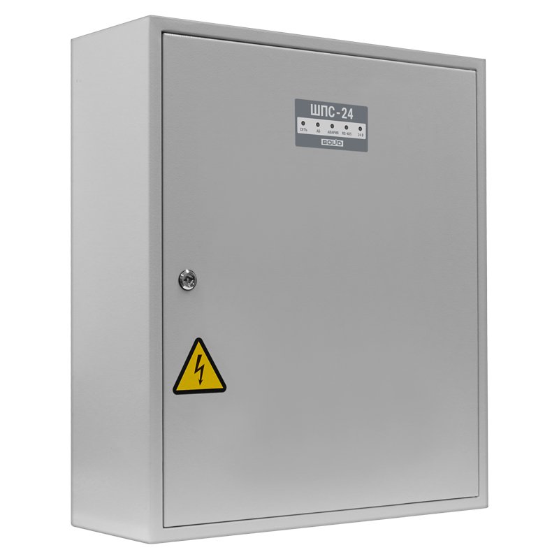 Шкаф пожарной сигнализации. Шкаф для монтажа средств пожарной автоматики с креплением на DIN-рейку; 2 ввода питания; U-вх.180…265 В, U-вых.27.2±6 В, I-ном.3 А, I-макс.3.5 А, под два АКБ 12 В 26/40 А·ч; встроенный блок коммутации БК-24-RS485 (две изолированные линии интерфейса RS-485 для подключения к компонентам ППКП и ППКУП расположенным за пределами ШПС, одна линия RS-485 для подключения компонентов ППКП внутри ШПС; 7 выходов для подключения к приборам внутреннего интерфейса RS-485 и 7 выходов питания; IP41, t-раб.-10…+40°С, 700×600×225 мм. Возможность установки монтажного комплекта МК-1.