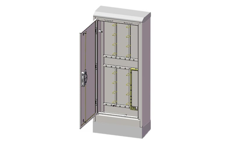 Предназначен для перехода с магистральных кабелей на распределительные кабели местных сетей. Номинальная емкость шкафа – 1200 пар.Шкафы ШР могут устанавливаться как внутри помещений, так и на открытом воздухе. Использование покрытий, обладающих высокой механической прочностью, коррозийной и химической стойкостью, позволяют применять шкафы в неблагоприятных климатических условиях. Высокая прочность материала и уплотнители дверей предотвращают попадание внутрь шкафа пыли, влаги и насекомых. Надежный замок с приводом на тяге обеспечивает блокировку двери в трех точках. Крепление монтажной рамы непосредственно к цоколю (основанию) позволяет заменить корпус шкафа без демонтажа боксов БКТ.Вместо боксов БКТ в шкафы могут быть установлены боксы БКТО, при этом номинальная емкость шкафов увеличивается в 2 раза (с 600 до 1200 пар).Поставляется пустым в виде корпуса.