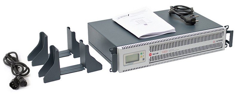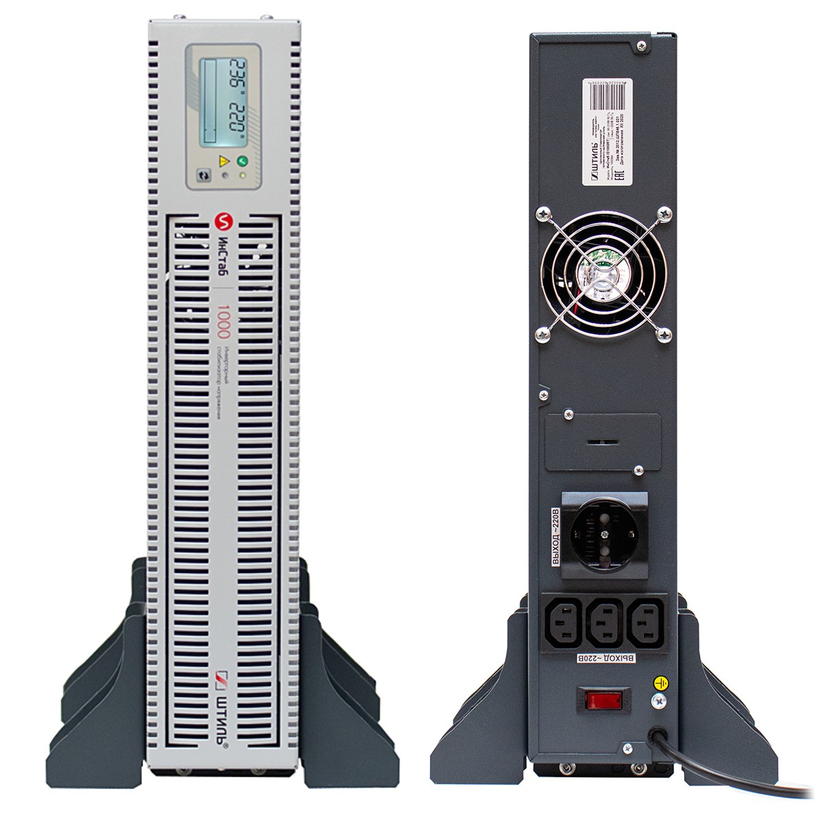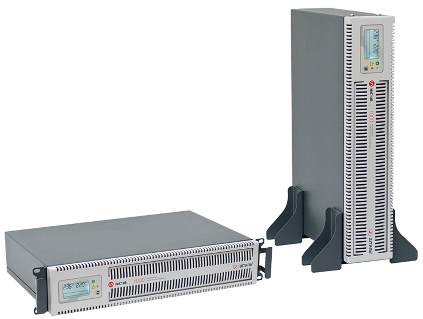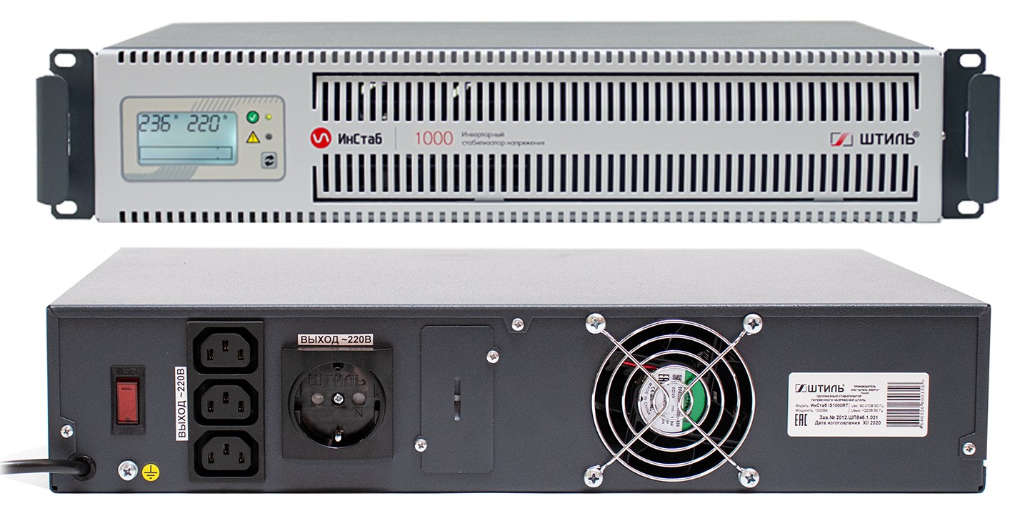 Стабилизатор переменного напряжения инверторный. Стабилизатор переменного напряжения инверторный (с двойным преобразованием) однофазный, чистая синусоида; P-нагр.1000 ВА/800 Вт, U-вх.90…310 В, U-вых.220 В, I-вых.4.5 A; ЖК-дисплей со светодиодными индикаторами и кнопкой управления; IP20, t-раб.+5…+40°C, 88х484х316 мм