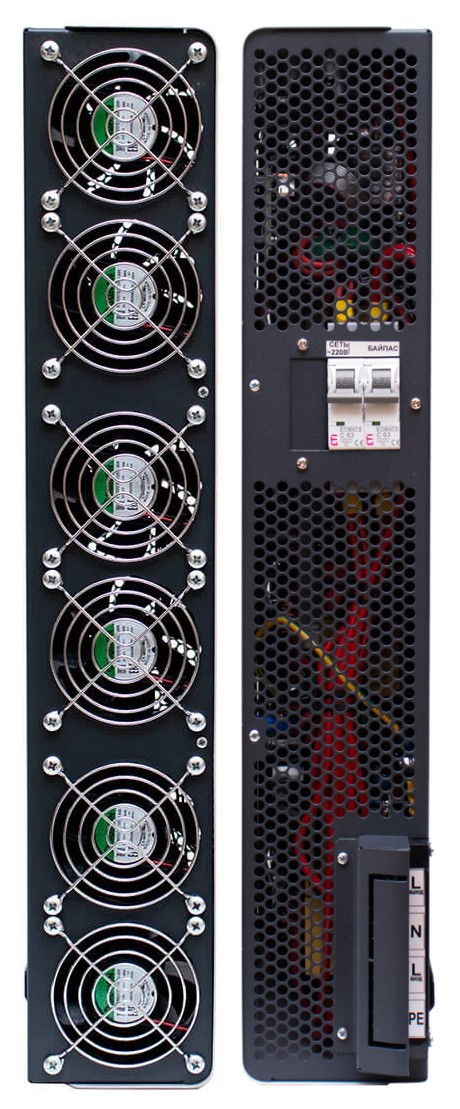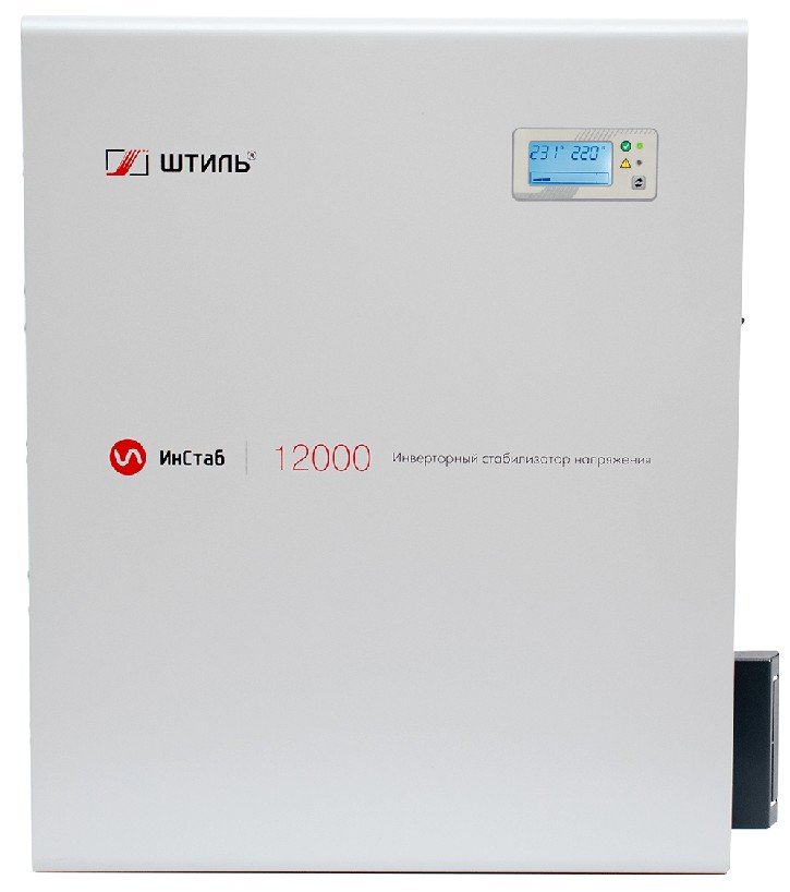 Стабилизатор переменного напряжения инверторный. Стабилизатор переменного напряжения инверторный (с двойным преобразованием) однофазный, чистая синусоида; P-нагр.12 кВА/11 кВт, U-вх.165…310 В, U-вых.220…230 В (с шагом 1 В), I-вых.55 A; IP20, t-раб. +5…+40°C, 535х480х103 мм