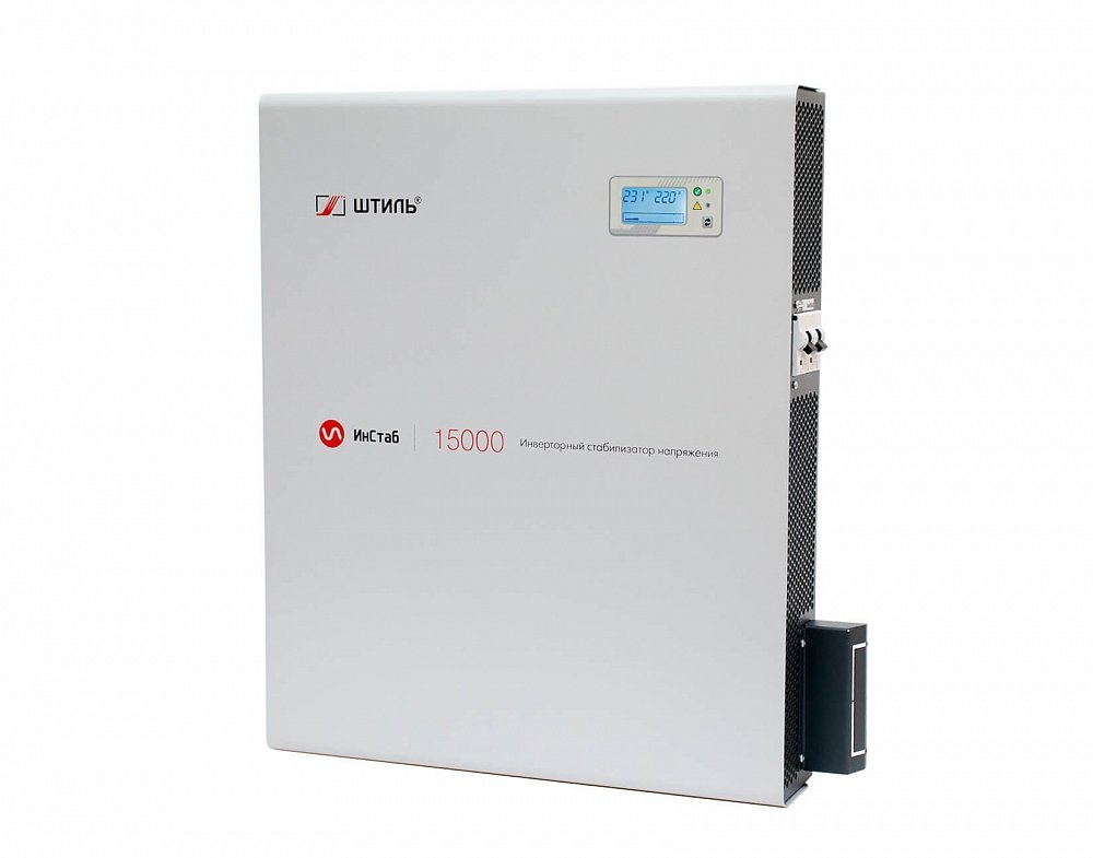 Стабилизатор переменного напряжения инверторный. Стабилизатор переменного напряжения инверторный (с двойным преобразованием) однофазный, чистая синусоида; P-нагр.15 кВА/13.5 кВт, U-вх.90…310В, U-вых.220…230 (с шагом 1В), I-вых.68 А; IP20, t-раб.+5…+40°C, 480х535х103 мм