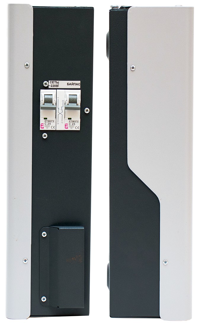 Стабилизатор переменного напряжения инверторный. Стабилизатор переменного напряжения инверторный (с двойным преобразованием) однофазный, чистая синусоида; P-нагр.5 кВА/4,5 кВт, U-вх.165…310 В, U-вых.220…230 В (с шагом 1 В), I-вых.23 A; IP20, t-раб. +5…+40°C, 358х246х101 мм