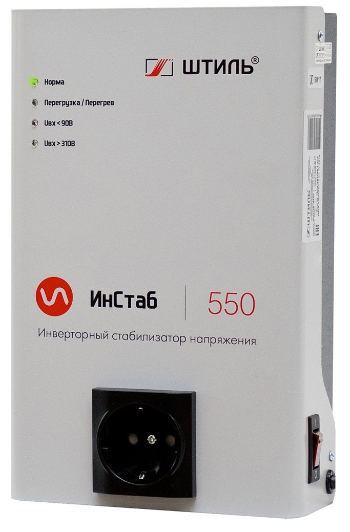 Стабилизатор переменного напряжения инверторный. Стабилизатор переменного напряжения инверторный (с двойным преобразованием) однофазный, чистая синусоида; P-нагр.0.55/0.4 кВт, U-вх.90…310В, I-вых.2.5 А; IP20, t-раб.+5…+40°C, 155х245х82мм