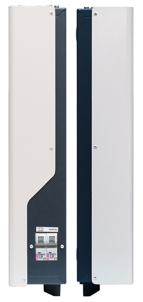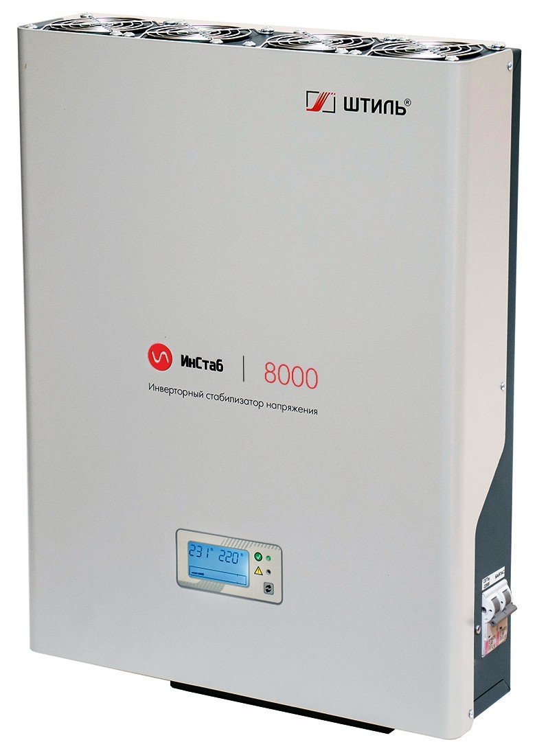 Стабилизатор переменного напряжения инверторный. Стабилизатор переменного напряжения инверторный (с двойным преобразованием) однофазный, чистая синусоида; P-нагр.8 кВА/7.2 кВт, U-вх.90…310В, U-вых.220…230 (с шагом 1В), I-вых.36 А; IP20, t-раб.+5…+40°C, 370х498х101 мм