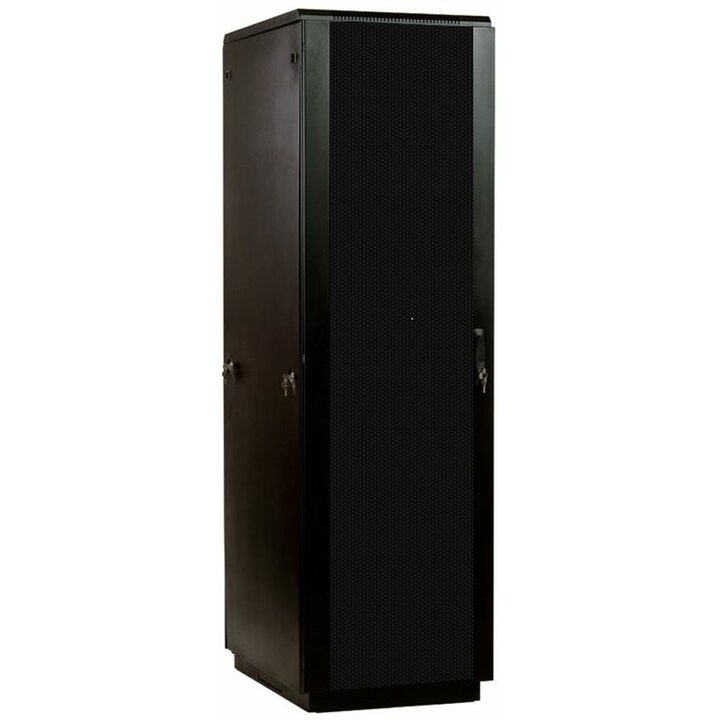 Шкаф телекоммуникационный 19" напольный 42U. Шкаф телекоммуникационный 19'' напольный , 42U, передняя и задняя перфорированные двери, ручка с замком, распределенная нагрузка 710 кг, полезная глубина 715 мм, цвет черный, разобранный, 1987x600х800 мм.