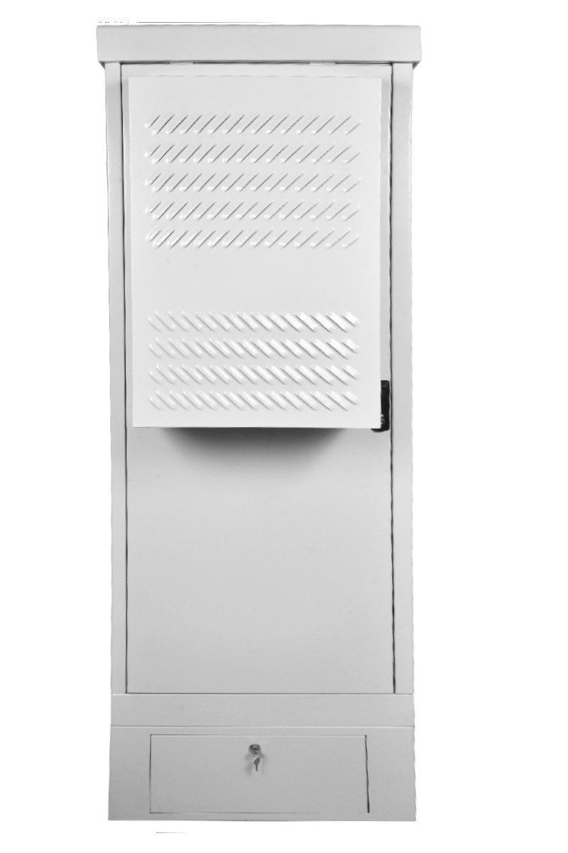 Шкаф уличный всепогодный напольный укомплектованный. Всепогодный шкаф 19" напольный укомплектованный системой климат-контроля REM, 30U, полезная глубина 520 мм, материал сталь 2мм, цвет серый, неразборный, допустимая нагрузка до 800 кг, вес 172 кг, IP55, IK10, климат. исп. У1; -50…+45°C, АС 220 В/1500Вт, 1575×745×645 мм.
