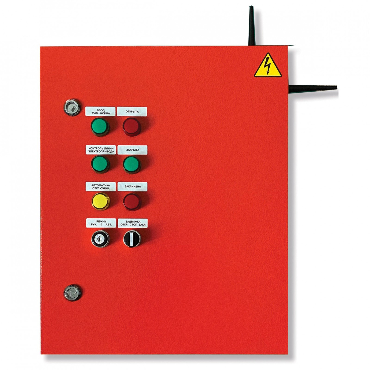 Шкаф управления задвижкой. Шкаф управления электроприводами задвижек (для трехфазных двигателей) радиоканальный для работы в составе радиосистемы Стрелец-ПРО, встроенный ретранслятор; f-раб.868 МГц, дальность связи до 2000 м (с радиорасширителями), U-пит.400 В, P-двиг.1.5 кВт, IP54, t-раб.-10…+50°С, 500х400х220 мм