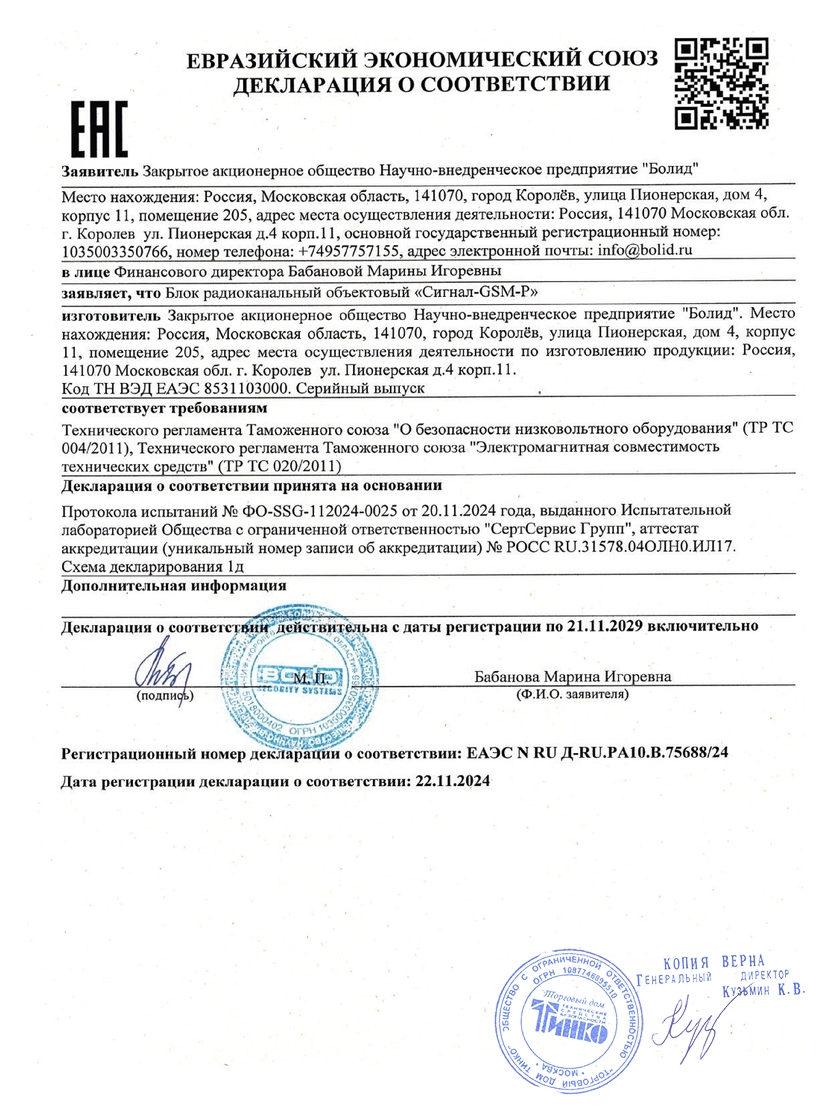 Блок приёмно-контрольный охранно-пожарный радиоканальный «Сигнал-GSM-Р» предназначен для организации автономных или централизованных систем охраны зданий и сооружений (офисов, магазинов, банков, складских помещений, жилых домов, учреждений, предприятий) от несанкционированных проникновений и пожаров.Блок обеспечивает защищённую двустороннюю связь с радиоканальными адресными охранными, пожарными, технологическими и измерительными устройствами и осуществляет постоянный контроль их присутствия в радиосети (выполняет функции Радиоконтроллера).Блок поддерживает подключение до 100 радиоканальных адресных устройств, включая устройства с функцией радио-ретранслятора