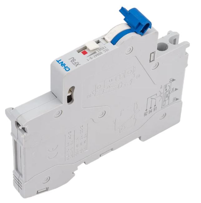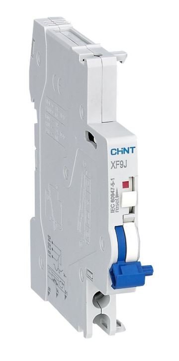 Сигнальный контакт. Сигнальный контакт XF9J предназначен для сигнализации аварийного срабатывания автоматического выключателя при сверхтоке или выключателя дифференциального тока при утечке. Контакт XF9J применяется с выключателями серий NB1-63, NB1-63H, NB1-63DC, NB8-40J NB8-63M, с АВДТ NB1L, NB1L-40, NB1L-63, NB2LE, NB310L, NXBL-40Y устанавливается с левой стороны выключателя.