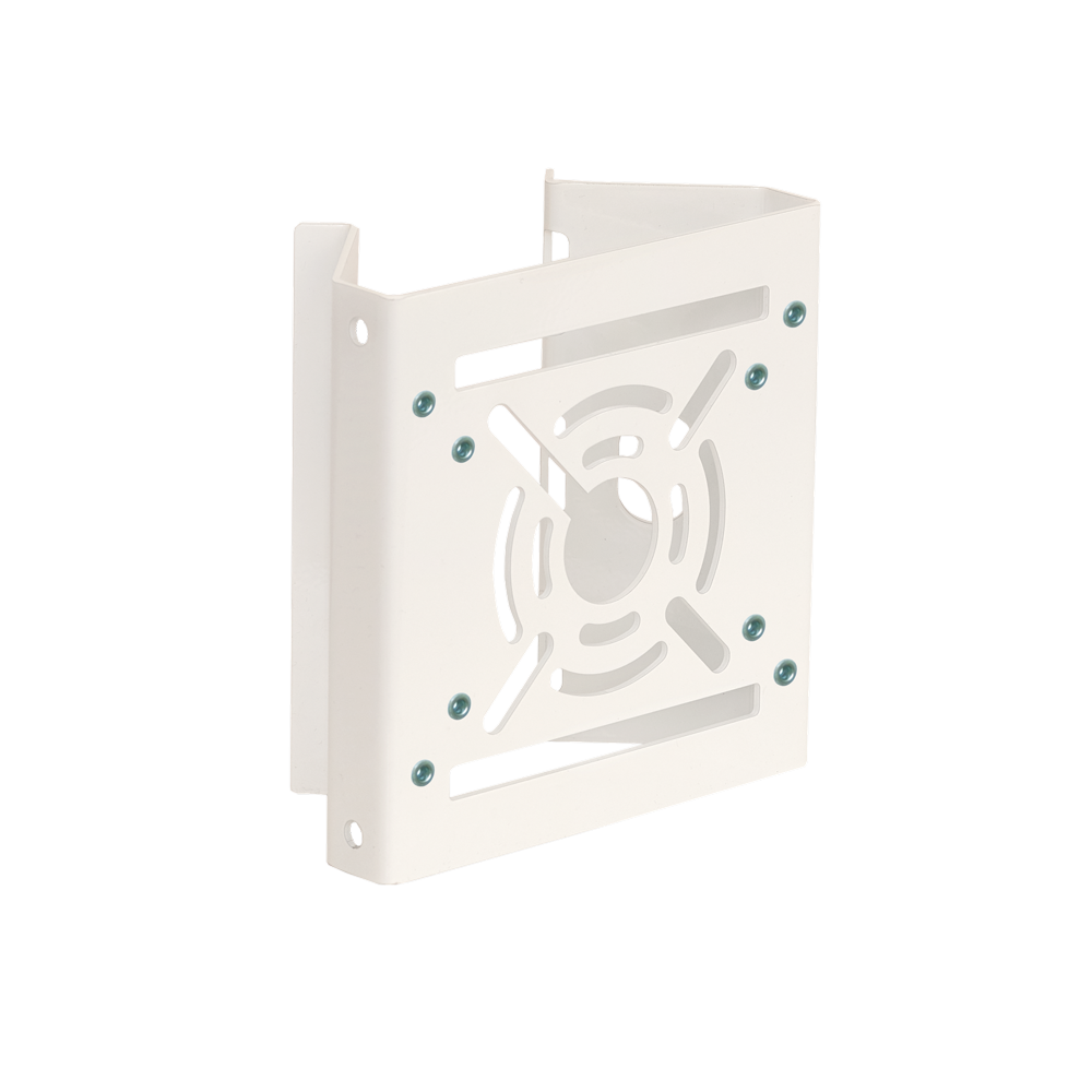 Столбовой кронштейн. Кронштейн на столб для камер видеонаблюдения, крепление на столбы и опоры, материал: оцинкованная сталь, толщина металла: 2 мм, размеры: 144х138х65 мм, масса: 0,56 кг, нагрузка: до 10 кг, диаметр мачты: от 76 мм, ширина крепежной ленты: до 24 мм, совместимые коробки: JB-100, JB-05, JB-01, PB-01, комплектация: кронштейн, винты М4 (4 шт.), особенности: резьбовые клепки для монтажа коробок PB-01.