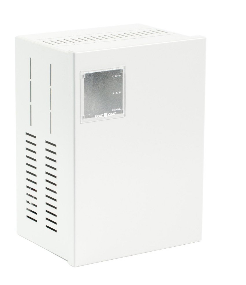 Источник резервного электропитания. Резервный источник питания (устройство заряда аккумуляторных батарей); U-вх.170…250 В, U-вых.9.5…14 В, суммарный выходной ток при наличии основного питания не более 5 А, суммарный выходной ток при отсутствии основного питания не более 20 А; под АКБ 12 В 17(26) А·ч; световая индикация режимов работы, диагностические выходы типа "сухой контакт", защита от короткого замыкания, защита аккумулятора от глубокого разряда; t-раб.-10…+40°С, 295х215х158 мм