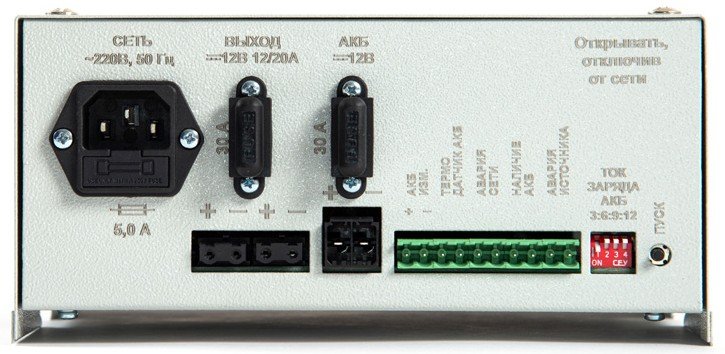 Предназначен для питания систем связи, телекоммуникационного оборудования и других потребителей с напряжением в цепях питания 12 В и постоянным током до 20 А. Используется как источник резервного питания и зарядное устройство для свинцово-кислотных АКБ номинальным напряжением 12 В и емкостью 17...250 Ач. Имеет три выхода с суммарным током до 12 А (при наличии сети и без АКБ). При подключенной АКБ, в основном и резервном режимах питает нагрузку суммарным током до 20 А.
