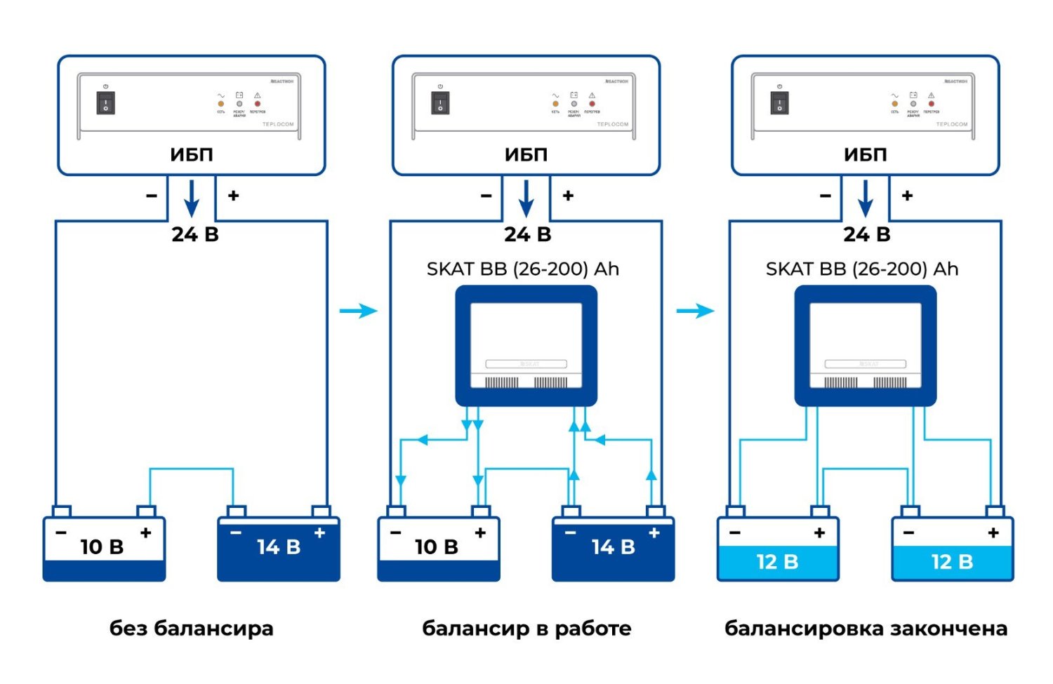 Балансир свинцово-кислотных АКБ для увеличения энергоэффективности и продления срока службы АКБ. Автоматическое выравнивание (балансировка) напряжения на клеммах АКБ, микропроцессорное управление. Для 2-х АКБ от 26 до 120 Ач. Защита АКБ от недозаряда, перезаряда, сульфатации. Увеличивает срок службы АКБ в 2 раза. Рекомендуем для TEPLOCOM-600 и TEPLOCOM-1000