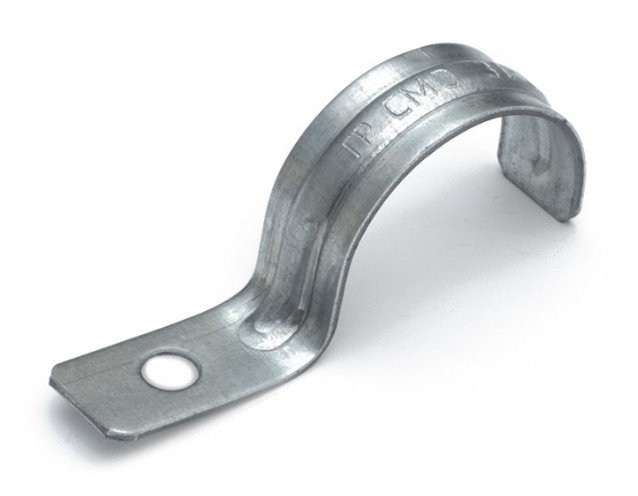 Скоба металлическая однолапковая усиленная (СМОУ), предназначена для крепления металлорукава, металлических и пластиковых труб к различным несущим поверхностям, а также для монтажа кабельной продукции. Изготавливается с монтажными отверстиями диаметром 6,5мм, что обеспечивает возможность установки анкер-клина диаметром 6 мм. Конструкция скоб соответствует ГОСТ 17678-80. Скобы металлические изготавливаются из оцинкованной стали (по ГОСТ 14918), толщиной от 0,9 до 1,9мм. Применяются в ОКЛ.