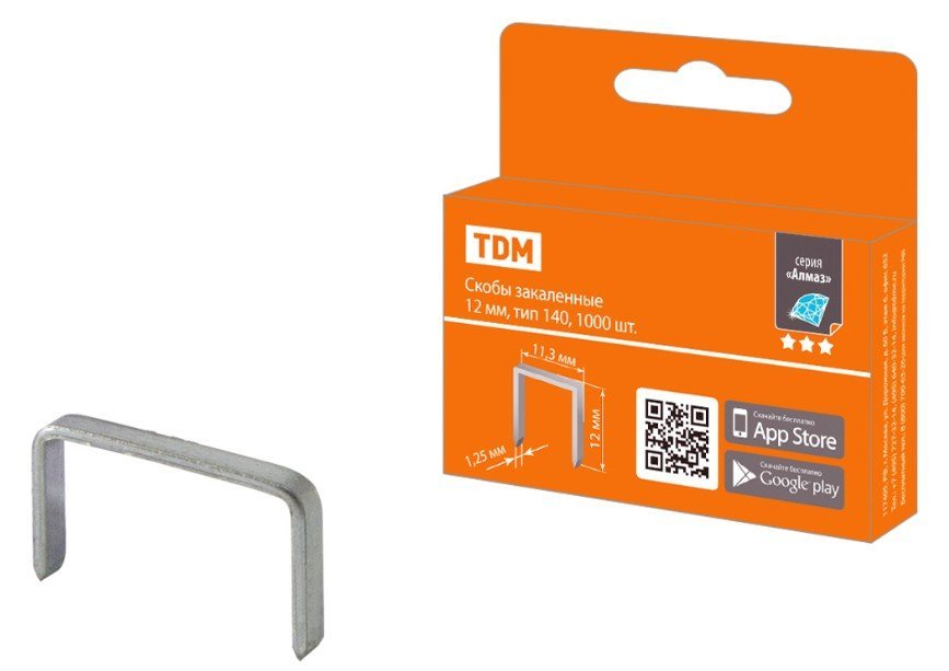 Скобы закаленные 12мм, тип 140 (1000шт) "Алмаз" TDM (SQ1038-0203)