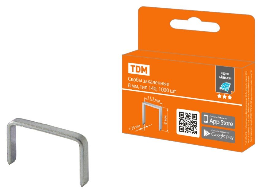 Скобы закаленные 8мм, тип 140 (1000шт) "Алмаз" TDM (SQ1038-0201)