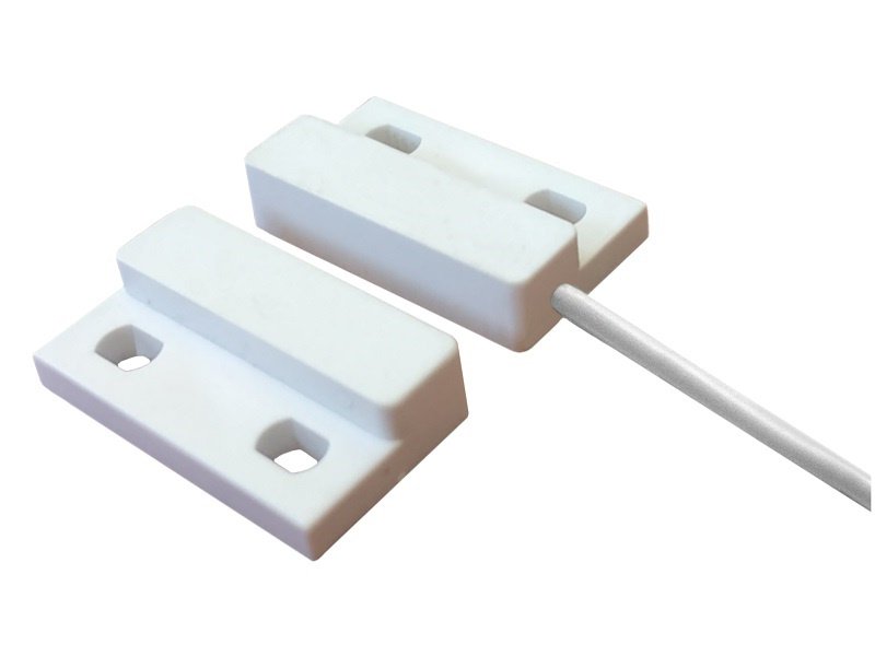 Извещатель охранный точечный магнитоконтактный. Сигнализатор магнитоконтактный для систем автоматики; контакты переключаются при тревоге, 8 мм (контакты замкнуты), 12 мм (контакты разомкнуты); U-коммут.200 В, I-коммут.500 мА, P-коммут.10 Вт; IP68, t-раб.-60…+85°С, 32х15х6.8 мм (геркон и магнит). Два провода по 355 мм. Пластиковый корпус. 0.025 кг.