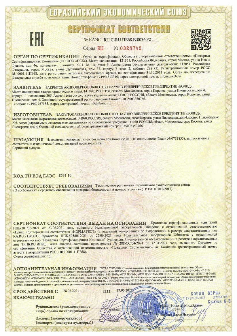 Предназначен для обнаружения загораний, сопровождающихся выделением угарного газа (CO), а также тепла. Совмещает в себе пороговый газовый и максимально-дифференциальный тепловой (класс A1R) пожарные извещатели.