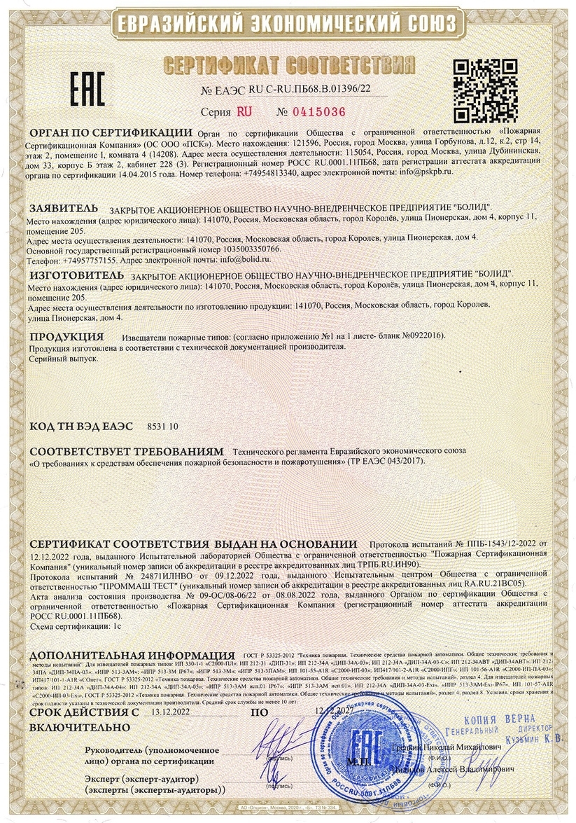 - два критерия обнаружения пожара: контроль концентрации угарного газа и температуры;- раннее обнаружение возгораний;- проверка работоспособности нажатием на световод или лазерным тестером;- световая индикация состояния;- крышка для защиты от пыли в период строительства и ремонта;- совместим с монтажными комплектами для крепления в подвесной потолок МК-2;- применяется совместно с блоком "Сигнал-10" и приемно-контрольными приборами "Сигнал-20", "С2000-4" и другими приборами, имеющими напряжение в шлейфе сигнализации до 30 В и ограничивающими ток на уровне не более 25 мА.