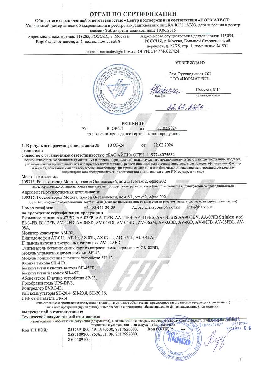 Абонентское IP аудиоустройство с поддержкой SIP, P2P и внутреннего протокола BAS-IP. Оснащено кнопками для быстрого вызова консьержа, открытия замка, управления режимом «Не беспокоить», электронной регулировки громкости, а также для вызова лифта на этаж.
