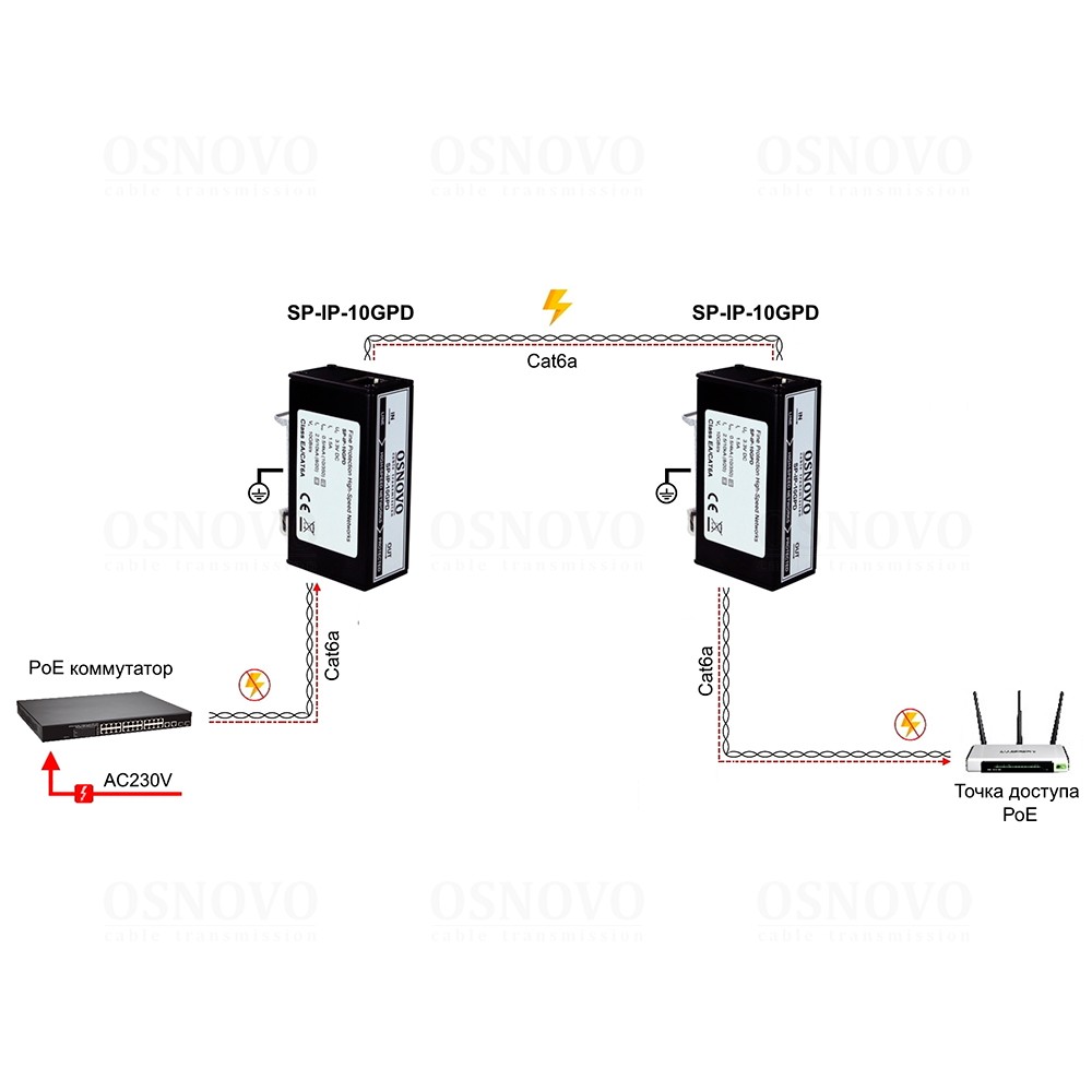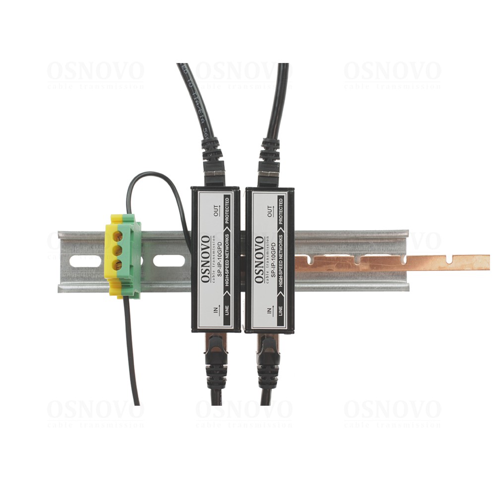 Устройство грозозащиты цепей Ethernet. Устройство грозозащиты для локальной вычислительной сети (скорость до 2,5 Гбит/с для кабеля кат. 5e, скорость до 10 Гбит/с для кабеля кат. 6a) с защитой линий PoE (af/at/bt, методы A + B, контакты 1/2, 3/6, 4/5, 7/8); двухступенчатая защита; максимальное длительное рабочее напряжение (Uc) DC 58В; номинальный ток разряда (8/20 мкс, In) 1.5 кА; суммарный ток разряда (8/20 мкс, Itotal) 10 кА; время отклика 1нс; 2xRJ-45; монтаж на DIN-рейку; 25х73х50мм; -40…+80°C.
